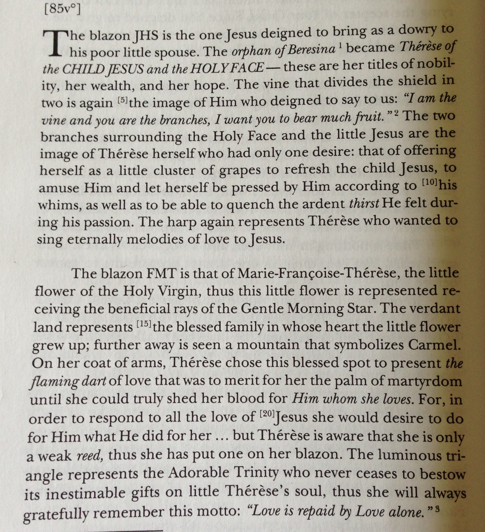 St. Therese of Lisieux created such a photograph for herself. She created a coat of arms. Many of us would say it is like a family crest. In it she placed symbols that described her spirituality, her relationship with God and what her mission in life was. It was a snapshot of her passion and her purpose that would give her perseverance.