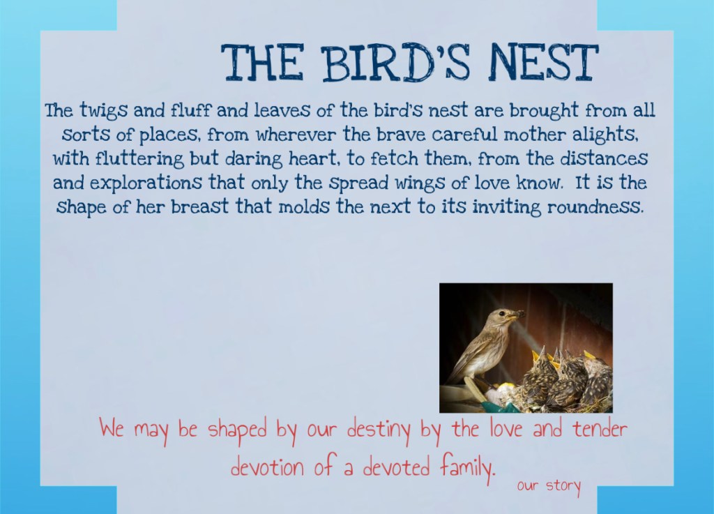The bird’s nest is an analogy of those whose life was formed in love.