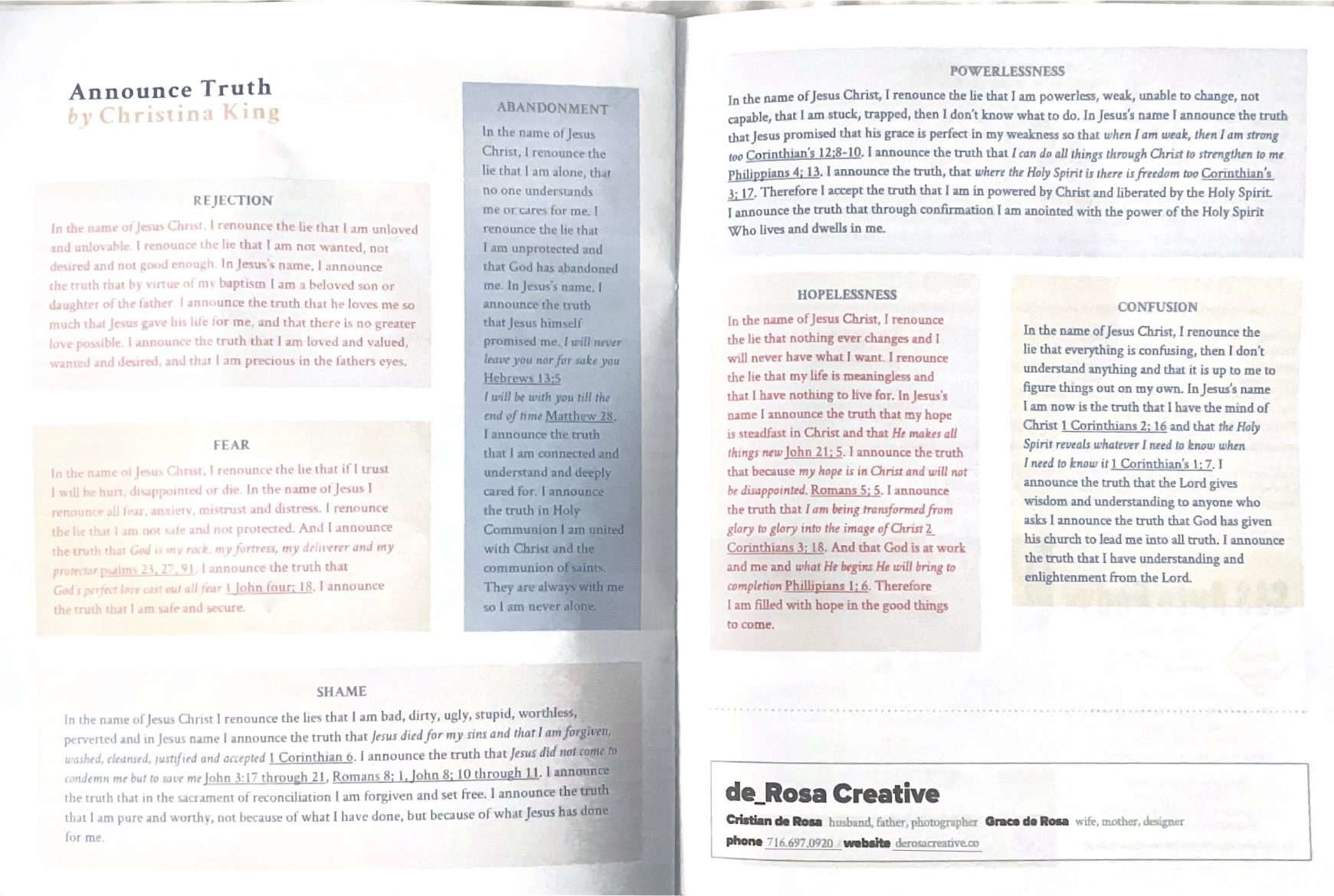 ANNOUNCEMENT OF TRUTHS (From Healing The Whole Person Workbook, John Paul II healing Center/Dr. Bob Schuchts healing ministry)