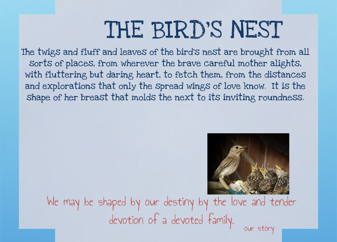 The bird’s nest is an analogy of those whose life was formed in love.